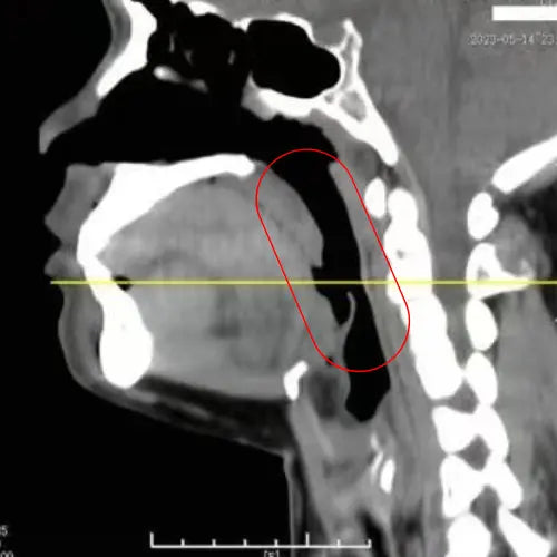❌ Before use, the airways appear obstructed by relaxed throat muscles.